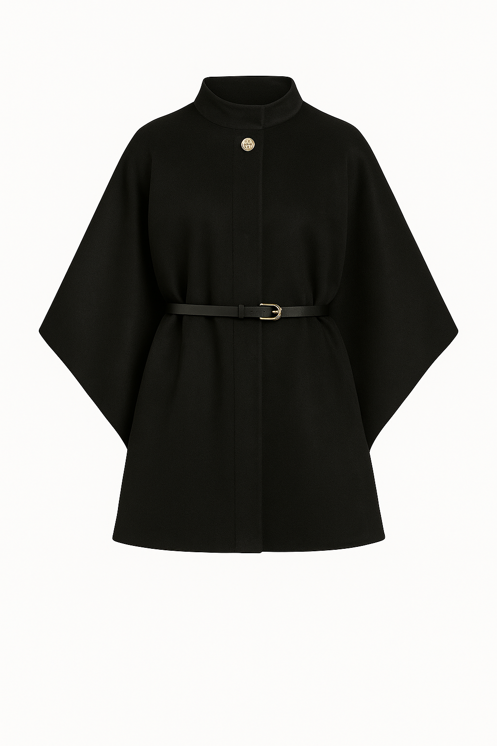 Transformez votre garde-robe avec cette élégante veste cape noire. Parfaite pour l’automne et l’hiver, elle offre une coupe ample et sophistiquée avec un col haut boutonné, alliant confort, chaleur et un style résolument chic. Une pièce phare pour vos looks hivernaux.